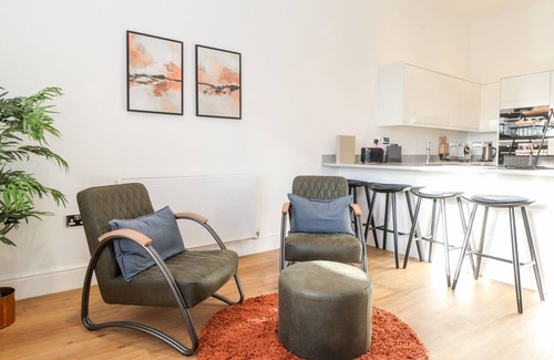 Amenities: Gas central heating. Smart TV with Freeview, WiFi. Fuel and power inc. in rent. Bed linen and towels inc. in rent. Highchair and cot available. Hairdryer. Designated parking for 2 cars. EV charging on site. Private rooftop terrace with decking and furniture. Landscaped gardens. Boules court. Putting green. Covered bike store for 10 bikes with an additional external rack for 4 bikes. Sorry, no pets and no smoking. Shop 0.2 miles, pub 0.4 miles. Note: Check-in from 4pm, check-out by 10am. Note: There is lift or stair access to the apartment, but only stair access inside the apartment. Note: Children must be supervised on the rooftop terrace. Please note- If you would like to book 3 or more suites, please enquire first.