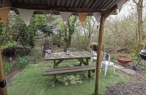 Amenities: Gas hob, microwave, fridge, freezer, coffee maker, toaster, kettle in shared kitchen. Selection of books and games. Fuel, power and starter pack for woodburning stove inc. in rent. Crib available on request. Off-road parking for 1 car. Non-enclosed garden with furniture, barbecue and fire pit. 1 well-behaved dog welcome. Sorry, no smoking. Shop 5.1 miles, pub 1.3 miles. Note: There is no running water in the dwellings but there is a tap in the woods by the parachute-covered communal area. Note: Bring torches and car chargers, charging points are available in the shower area. Note: Plates, bowls, pots, pans, cups, glasses, cutlery and dishcloths etc are all provided. Note: There may be other guests staying in the woods at any one time but the units are all very private in their setting and no one will be accessing your personal space. Note: smallholding with cats, dogs, chickens, sheep, and horses, please be aware that pets are welcome in all our properties, and unfortunately, for those with allergies, these accommodations may not be suitable. Note: Please keep your furry friends on leads and pick up after them with the poo bags supplied at the entrance gate