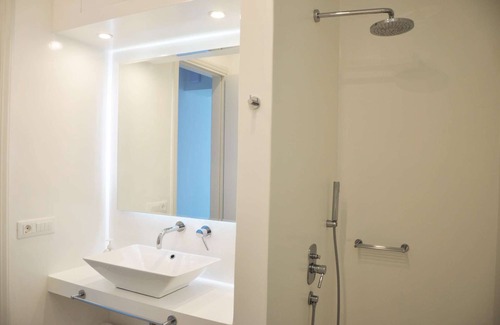 Discover the beauties of the island from a newly built modern luxury house by the sea, with an exclusive terrace with breathtaking views. Ideal for couples or small families. This 50 sqm house, completed at the end of 2015, feautures 1 bedroom with a queen size bed, a bathroom with shower, a fully equipped kitchen/ living room with direct access to a veranda with sea view, perfect for reading and dining outside. The living room is equipped with a sofa that can be used as additional bed.
