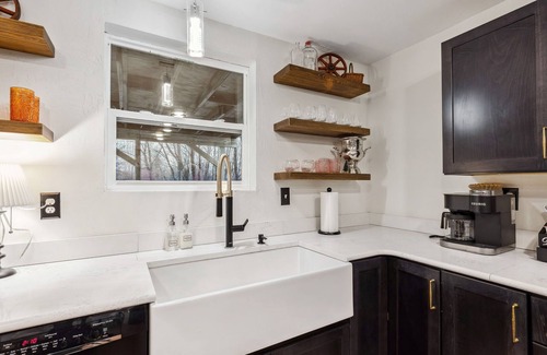 We've got enough space for up to 13 people across 9 beds in 5 bedrooms, plus the largest couch you've probably ever seen and a gigantic live-edge dining table to accommodate the entire crew. The kitchen is fully stocked if you decide to stay home and cook, and the deck and front porch are great places to relax and breathe the country air. You'll even find a little coffee nook in the second floor foyer where you can start your morning or enjoy a glass a wine before heading out for the evening.