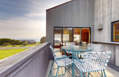 Inside this warm, welcoming retreat, feel right at home under the vaulted ceilings in the spacious living area featuring elegant furnishings, expansive windows for views at nearly every angle, and natural wooden accents that bring the beauty of the outside in. Snuggle up by the wood-burning fireplace, play card games at the dining table, or whip up delicious meals in the full kitchen. Even better, have a barbecue, kick back with friends on the patio, and dine alfresco in the ocean air. The great company and magnificent sunset views are certain to inspire unforgettable vacation memories.