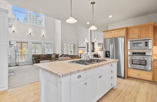 Luxury 2,300 sq, ft. air conditioned three bedroom, two and half bathroom, pet-friendly vacation rental home in Bend. This popular rental is located inthe exclusive neighborhood of River Wild in Mt. Bachelor Village Resort.A serene home away from home, this sought-after Bend vacation rental is quiet, peaceful, and nestled amongst beautiful Ponderosa Pines with a large covered wrap-around deck, patio dining area, single-car garage, and plenty of off-street parking on the driveway. Don't miss your chance to stay in the highly desirable River Wild neighborhood of Bend's West side.