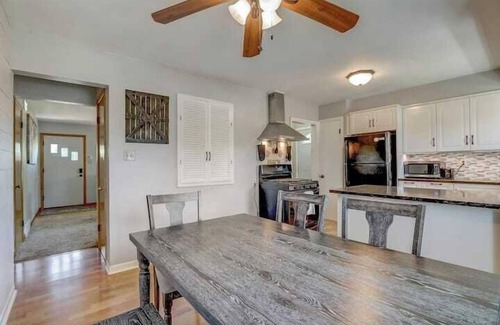 Classic mid century ranch home with all three bedrooms and full bath on the main floor. Two bedroom feature queen beds, third bedroom features 2 twin beds. Off-street parking for 3 vehicles included. Fully stocked kitchen, private office, game room with foosball & air hockey and board games, den/media room, on-site laundry.
