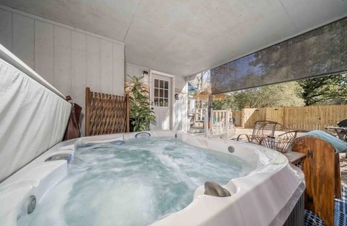 Privacy…6 foot enclosed courtyard large deck, mandala curtains, soothing hot tub, outdoor fire table, star gazing, a cozy cottage, makes for a wonderful get away. A relaxing private jacuzzi hot tub just steps from master bedroom. Owls, coyotes, fox , often heard while sitting outside. This is a Cozy cottage along Lake Catherine with large deck and Miami style privacy curtains directly off kitchen. Top reviews by guests who stayed, “ an enchanting place I don’t want to leave”, “ one of the best places I’ve ever stayed with my husband”, “ I love love the hot tub it is wonderful”. The hot tub is highly maintained before and after each guest. It is a wonderful lounging designed hot tub. Come stay a while!