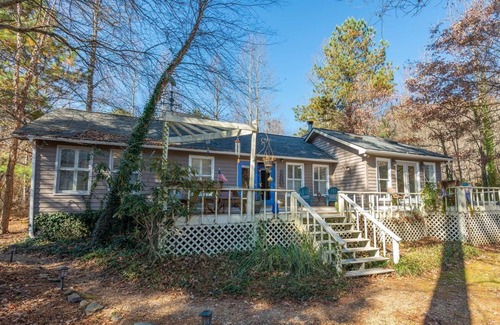 Merry Rose Cottage, on the banks of the Toccoa River, is accessible by a gravel country road, (presently under repair and underway!!!) and will be completed soon.) Surrounded by lush vegetation and the sounds of nature. This lovely country cottage, with its lovely Decor and relaxed atmosphere, has a whimsical feel; even the smallest details have been attended to. There is a picnic area only steps away from the dock overlooking the River with a romantic seating area that would be perfect for an intimate dinner for two. Guests will feel as though they have simply borrowed the weekend country house of an old friend instead of renting just another mountain vacation home. Whether you decide to spend time relaxing in the hot tub located in the area off the master bedroom, or snuggled up on the sofa beside the wood burning fireplace, you are sure to find your perfect spot in this charming cottage on the River. The Cottage has two private master bedrooms with their own bathroom and river view. The King Master suite has a stunning private bath that has been totally renovated. In the Master King Bedroom there is a king size bed with new comfortable mattress. There are cathedral ceilings w/skylights in both the new bath and the Master Suite which opens on to a large deck with a beautiful recessed hot tub. Kitchen is nicely stocked with dishwasher and new low profile Whirlpool Stainless Steel microwave, and there is a Stainless Steel gas grill on the deck for outdoor grilling. Amenities include newly installed Fast Fiber OpiticsWiFi, Dish Network (over 150 channels to choose from) with 43" Samsung HD Smart TV with DVR in the living room, and 32" RCA flat screen television also with DVR in King Master bedroom and the Queen Master Suite has new 32" Flat screen TV also. If you appreciate a good book there is your choice of books for riverside reading! Nearby attractions include hiking the beautiful trails of North Georgia, biking, antique shopping, vineyards and wineries. Also white water rafting, horseback riding, scenic railroad in Blue Ridge and the famous Swan Drive-In.