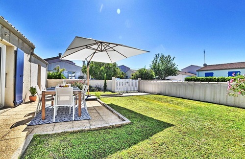 The single-family house "Les Pâquerettes" is an ideal vacation rental located in the resort of La Brée les Bains, just 550 meters from the town center. Enjoy a peaceful setting while being conveniently situated 1 km from the sea and beach. The property boasts a private garden spanning 200 square meters, complete with a lawn and wildlife garden area. Relax on the terrace, furnished with outdoor seating and a barbecue, while taking advantage of the on-site parking.