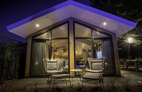 Please note that the Pool Lodge is a non-smoking property equipped with a smoke alarm. The villa can accommodate a maximum capacity of six guests, with three bedrooms and one bathroom. It's important to mention that this listing only allows a specific number of pets or dogs, as specified in the original text.