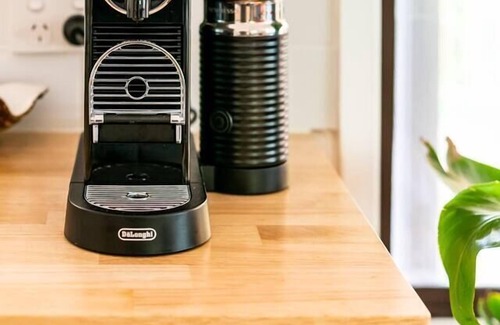 Be prepared to drive up a steep driveway that leads to a small set of stairs at the entryway. Inside, you will find the main lounge which features a comfortable chaise for relaxation, a widescreen TV, and an indoor fireplace to keep you cosy. This area seamlessly extends into an open kitchen and dining area equipped with a DeLonghi coffee machine to help you get your caffeine fix and start your day right.
