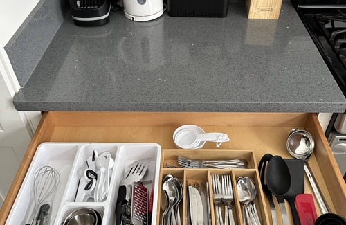 Fully stocked kitchen – pots, pans, dishes, silverware, pillows, towels, and more.