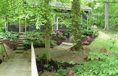 This idyllic Cabin nestled in a wooded area on the banks of a picturesque creek features a king size bedroom, slate bathroom, large great room with a cathedral ceiling, comfortable fully equipped Kitchen and two screened in porches. Relax and enjoy nature.