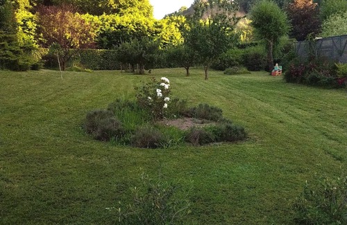 The top two floors of the house make up a separate apartment (available year round) with its own entrance at the rear of the house. The flat has a living room, fully equipped kitchen/dining room with an induction stove, kettle, toaster, dishwasher, pots and pans, high chair and, for the winter,a lovely wood-burning cooker that will also keep you nice and warm. There is an outdoor dining/living area for the summer, three double bedrooms (two double - one with extra bed - and one twin, a baby cot is available if needed) each with its own en-suite bathroom. The swimming pool (available from early June to end September), large areas of the garden and table tennis are reserved exclusively to our guests.