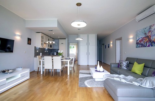 The apartment is fully equipped with all you need to enjoy your best vacation. From a high standard appliances (washing machine, dishwasher, fridge etc..) to luxury 2 bathrooms to high speed internet and a private garage.