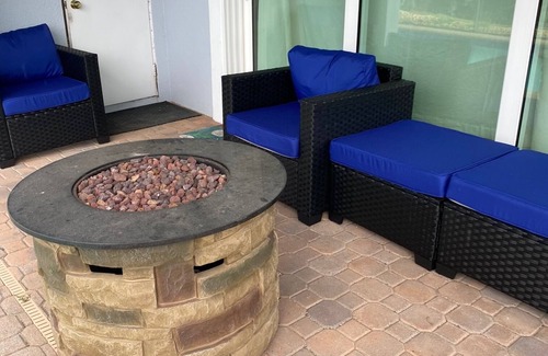 This Beautiful pool home has 3 bedrooms, 2 bathrooms, an office with a printer set up to use, a large kitchen, two sitting areas with a TV in each (one has a sectional), one small sitting/reading area, and a movie room with a large screen and surround system all ready for your stay. The large swimming pool allows for laps and relaxation, with an outdoor fireplace ready for any time of the day or night. This home is your home away from home. Both bathrooms are newly renovated and new patio furniture has been purchased.
