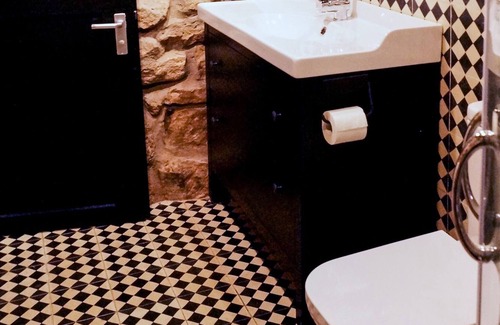 This newly remodeled apartment is located in a historic house in the center of Sulzbach. The apartment has 65 m2 of living space consisting of a fully equipped modern kitchen. One bathroom. One bedroom with a double bed and a large closet. An open living and dining room plan with an extra sleeping sofa bed. This apartment has a private entrance. It has an original rustic vintage style with wooden floors, stone walls, cement floor tiles. It can accommodate three adults or two adults and one child. It also has free WIFI and a Smart TV with Netflix installed.